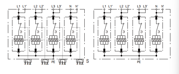 Modus des Schutzes: L-PE /L'-PE, N-PE / N'-PE