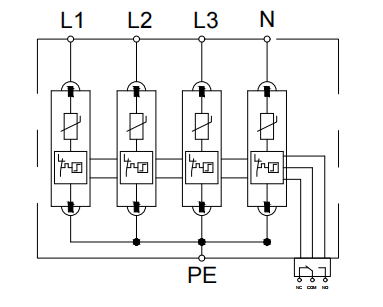 Our 40kA 4 pole AC surge protective device provides complete protection for three-phase + neutral (4P) systems.