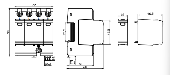 The device supports 35mm DIN rail mounting, ideal for industrial power cabinets, solar protection panelsund combiner boxes.