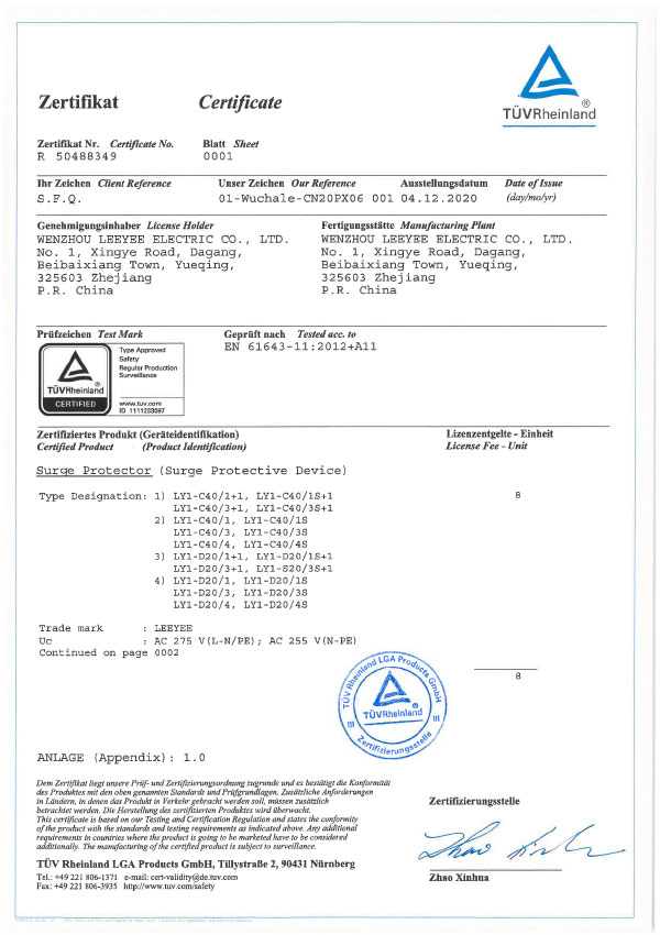 Los principales productos incluyen protectores contra sobretensiones de fuentes de alimentación, protectores contra sobretensiones de CC fotovoltaica, protectores contra sobretensiones de señal, cajas de protección contra rayos, enchufes de protección contra rayos PDU, etc. Los productos han pasado la inspección y certificación del Centro de Pruebas de Dispositivos de Protección contra Rayos de Pekín y el Centro de Protección contra Rayos de Shanghai, y tienen los certificados CQC, TUV, CB, CE, ROHS y otros.