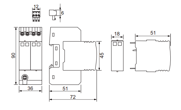 Made with PVC/PA66/PBT housing, it resists heat, mechanical stress, and electrical wear. The 3P+N configuration ensures that all three phases plus neutral receive equal protection, suitable for building distribution cabinets, industrial machines, automatic control systems, and small commercial transformers. The mini size design is perfect for limited-space environments such as control boxes and compact distribution boards.