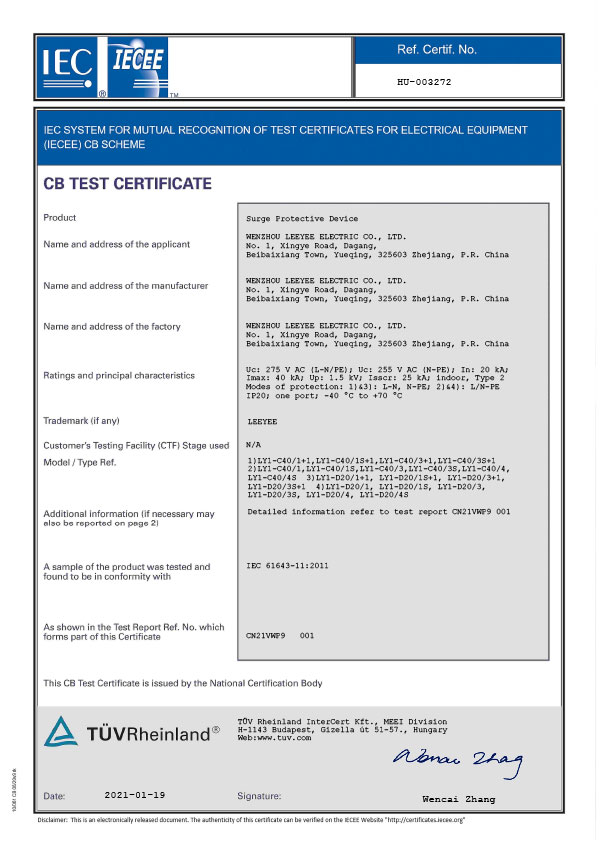 I prodotti principali sono i limitatori di sovratensione dell'alimentazione, i limitatori di sovratensione fotovoltaici, i limitatori di sovratensione del segnale, le scatole di protezione contro i fulmini, le prese di protezione contro i fulmini PDU, ecc. I prodotti hanno superato l'ispezione e la certificazione del Centro di prova dei dispositivi di protezione dai fulmini di Pechino e del Centro di protezione dai fulmini di Shanghai e hanno ottenuto i certificati CQC, TUV, CB, CE, ROHS e altri.
