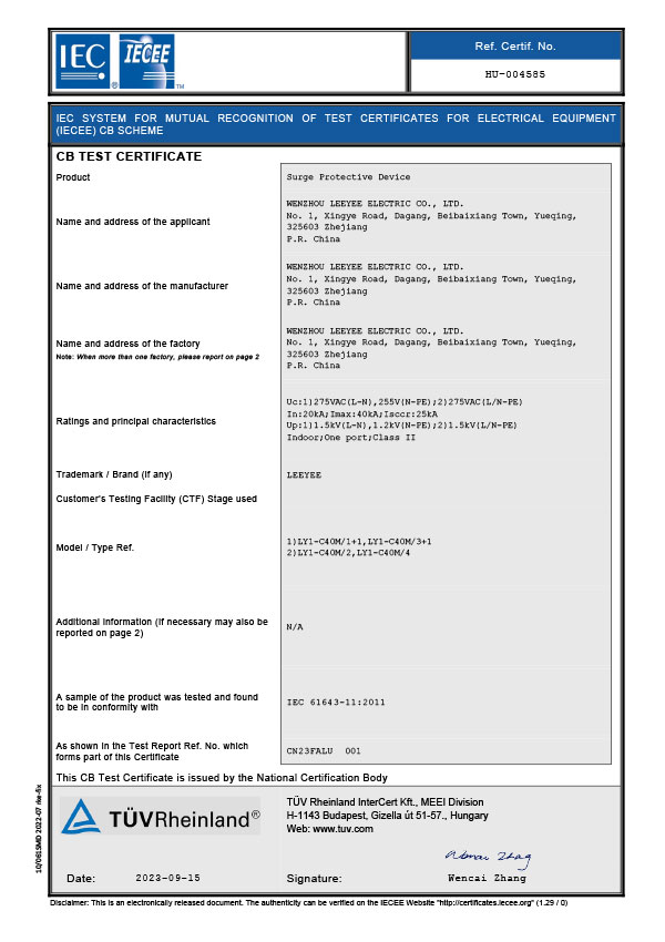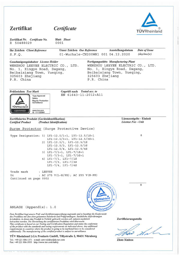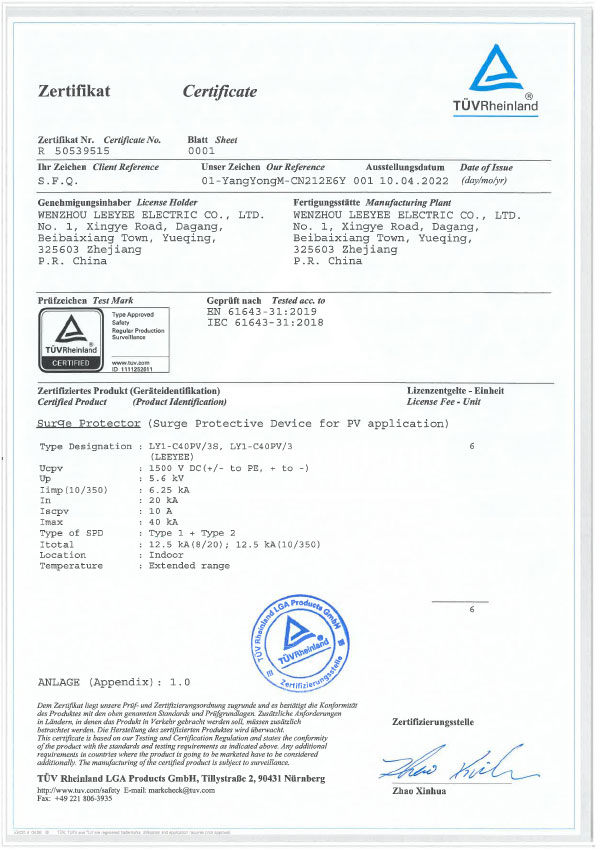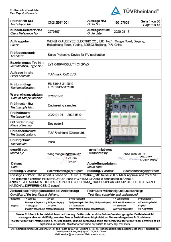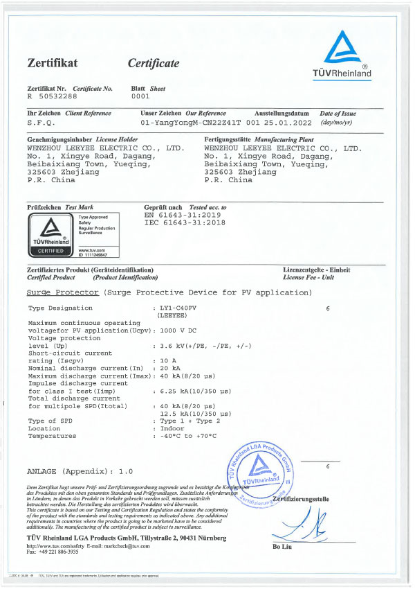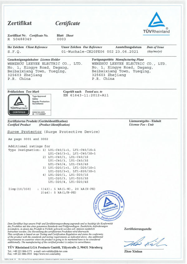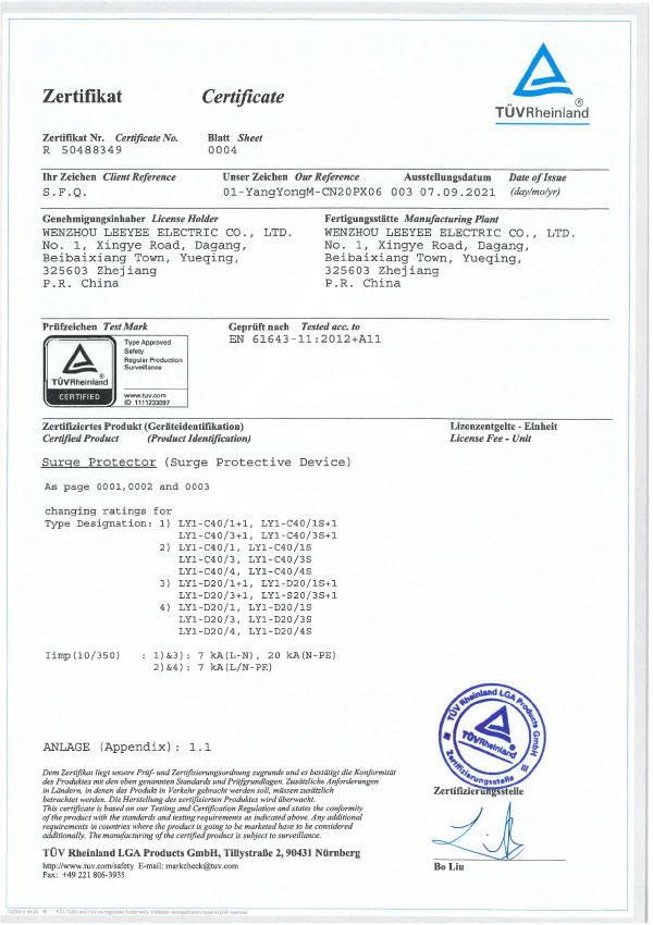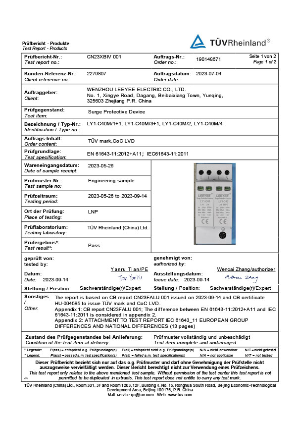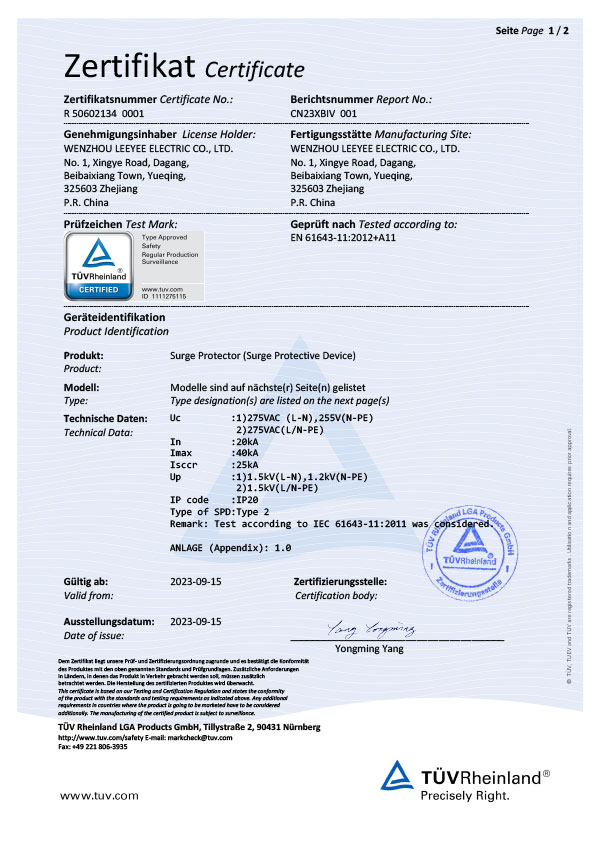Os principais produtos incluem o protetor contra sobretensões da fonte de alimentação, o protetor contra sobretensões DC fotovoltaico, o protetor contra sobretensões de sinal, a caixa de proteção contra raios, a tomada de proteção contra raios PDU, etc. Os produtos passaram na inspeção e certificação do Centro de Teste de Dispositivos de Proteção contra Raios de Pequim e do Centro de Proteção contra Raios de Xangai, e têm certificados CQC, TUV, CB, CE, ROHS e outros.